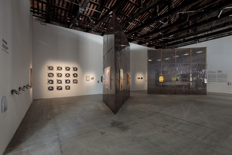 “Lumturi Blloshmi. From Scratch” is conceived as an exhibition project aiming at presenting and positioning the work and life of Lumturi Blloshmi anew within the context of national and international art history. This presentation consists of a selection of Blloshmi’s works from the 1960s until the 2010s, spanning self-portraits and compositions in painting and photography that say as much about Blloshmi’s aesthetic essence and personal reality as they do about the specific political and social context in which they were created. By remaining true to the unfiltered urge to express experience awareness, Blloshmi constantly pushed the boundaries of media and formal styles by experimenting with materials and combinations of media to achieve what she called “a distinct tangible universe.” Formally situated within the boundaries of figuration, her oeuvre - strongly informed by imagination and innovation - at its core transmits and resonates a sense of universality and timelessness. The presentation under the title “Lumturi Blloshmi. From scratch” The pavilion is conceived in such a way as to reflect Blloshmi’s tangible yet simultaneously ungraspable universe and its openness to interpretations. The exhibition architecture and display is created by the German architect Johanna Meyer-Grohbrügge.